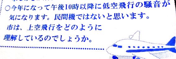 その中には市民から寄せられた各地区の要望が載っていたのですが、深夜に上空を通過する航空機の騒音に対する意見が2件載っていました。