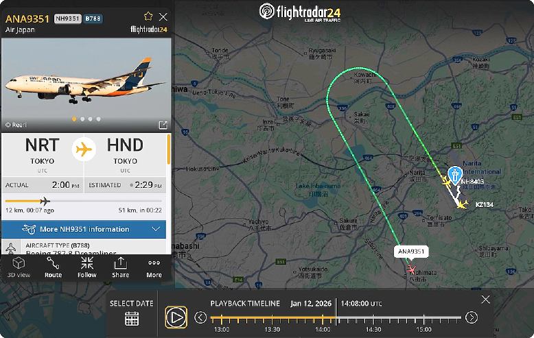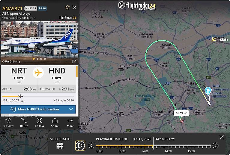 @昨日深夜、エアジャパン機が成田空港から羽田空港に向けて離陸