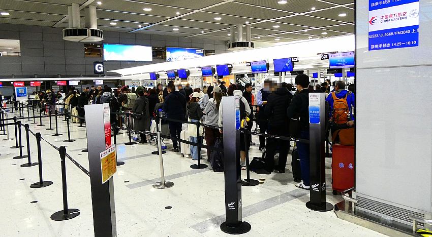 @やはり少ない中国訪日客、台湾からは大にぎわい 昨日行った成田空港第2ターミナルですが、3階の出発ロビーは、時間帯のせいもあるのか、かなりの混雑が見られました。 台湾に帰国する人の列はチャイナエアもタイガーエア台湾も長い行列が出来ていました。 一方、中国に帰国する人の列は前は大にぎわいだったのですが、中国東方航空や吉祥航空などのカウンターは、昨日はすいていました。 しかし、政府からの訪日自粛要請が出ているにしては、少ないながら航空便もありますし、訪日客もありました。 以下に写真を載せておきます。
